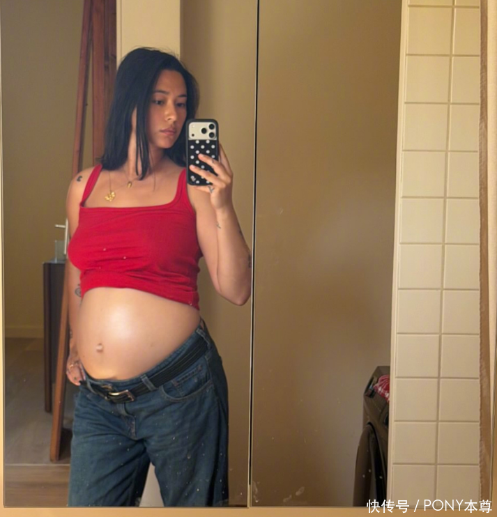 姜文的女儿姜一郎最近在社交平台分享自己的孕肚引发热议!这位混血美女在去年8月嫁给了一名法国职业模特!没想到现在已经是准妈妈!姜一郎晒出的照片中,身穿一件红色背心,搭配一条蓝色牛仔裤,孕肚隆起显著,目测孕期已达7-8个月,看起来要即将分娩样子!